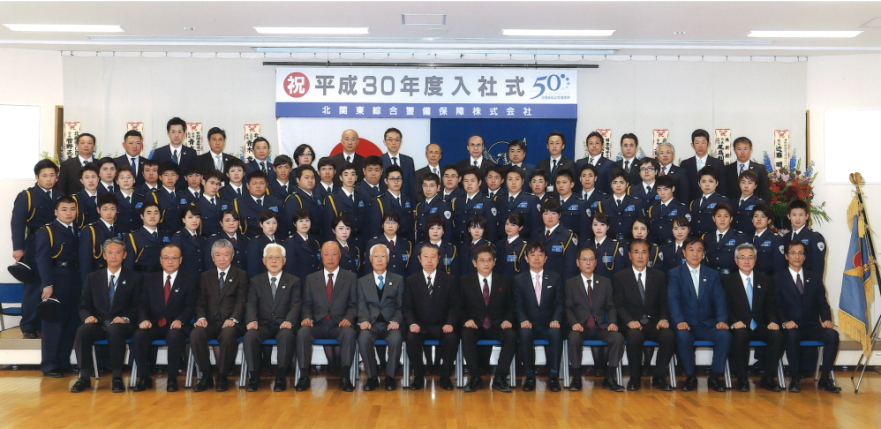 式辞において青木社長は、「皆さんは、入社前研修で、すでに教養を学んでいるかと思います。これからは、その教養を基に、社会人としてしっかり研鑽を重ねてほしい。自分の仕事を極め、最終的に世の中のためになるような仕事をしてもらいたい。今年で、50周年という年を迎えられたのも、北綜警の先輩社員の方々がさまざまな形でこの会社を支えてきたからです。皆さんは50周年というこの記念すべき年に入社した社員として、誇りを持って仕事に邁進してもらいたい。」と述べました。