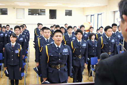 式辞において青木社長は、「皆さんは、入社前研修で、すでに教養を学んでいるかと思います。これからは、その教養を基に、社会人としてしっかり研鑽を重ねてほしい。自分の仕事を極め、最終的に世の中のためになるような仕事をしてもらいたい。今年で、50周年という年を迎えられたのも、北綜警の先輩社員の方々がさまざまな形でこの会社を支えてきたからです。皆さんは50周年というこの記念すべき年に入社した社員として、誇りを持って仕事に邁進してもらいたい。」と述べました。